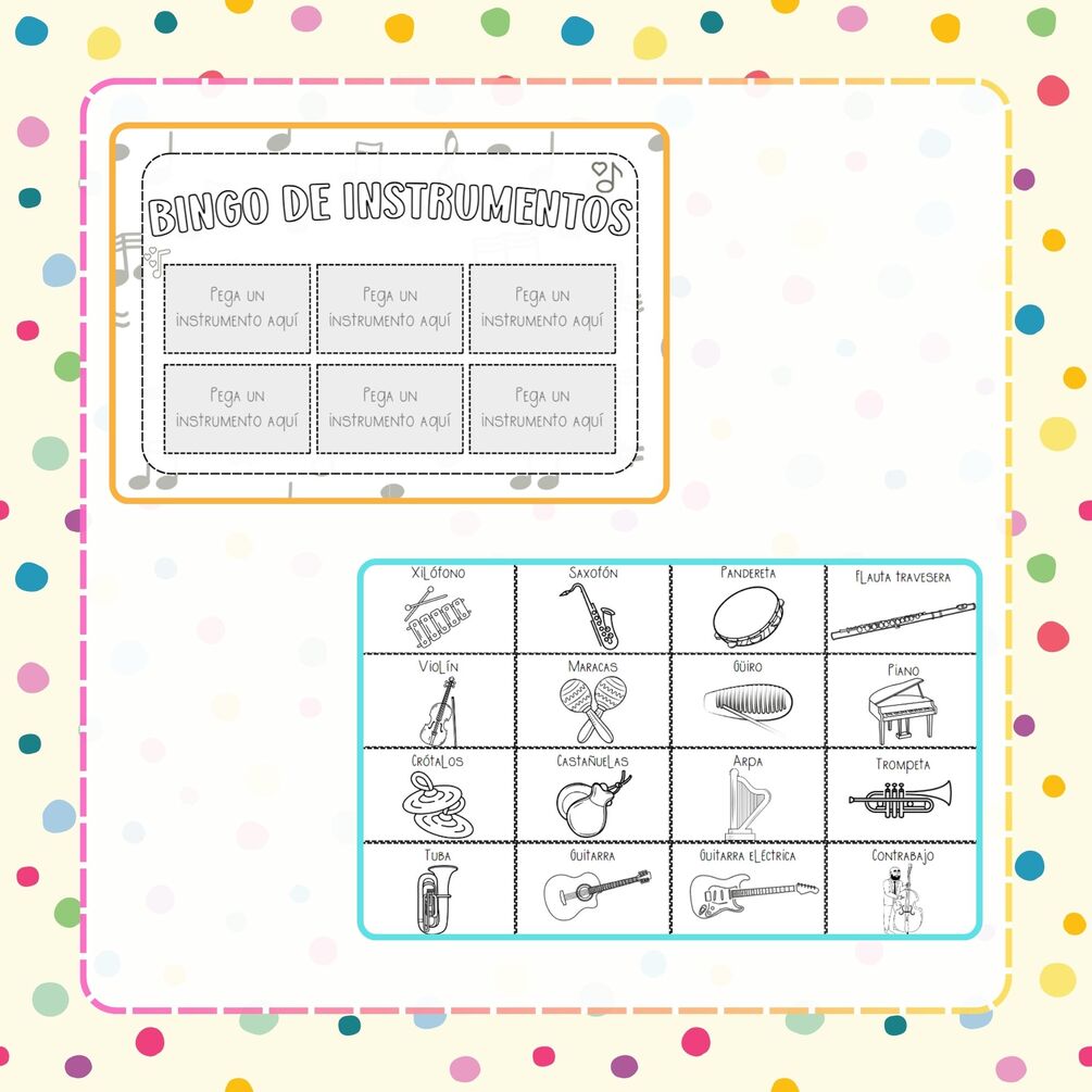 Plantilla con instrumentos variados para crear tu propio bingo.