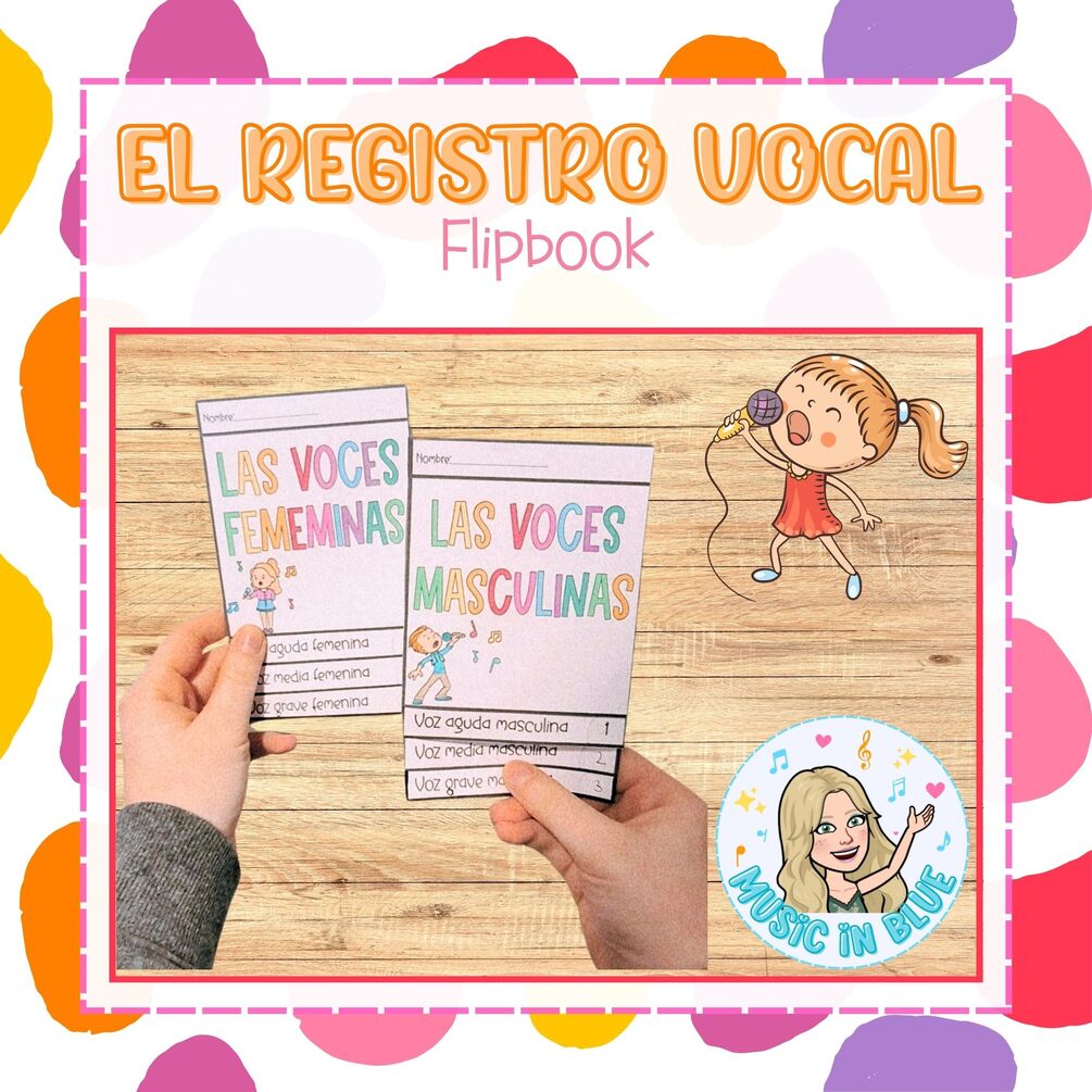 Flippbook para trabajar el registro vocal femenino y masculino con la portada en blanco y negro y en color.